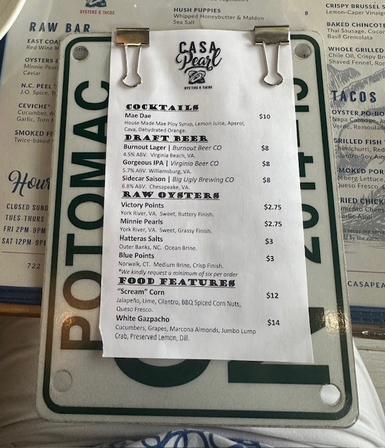 A few years ago I was at Casa Pearl during the time the population was trying to recover from the pandemic. A group of us went to Casa Pearl for dinner, but it really turned out that most of us ended up sharing lots of appetizers. We were seated in an outdoor covered tent. All I can remember from that time is that everything was good. So why haven’t we been back since? Not sure I have an excuse except that maybe seafood isn’t my husband’s favorite first choice. It’s a favorite for a lot of our friends. Heck, we even know the bartender that has been there for a few years now. Really no good excuse. That will change now.